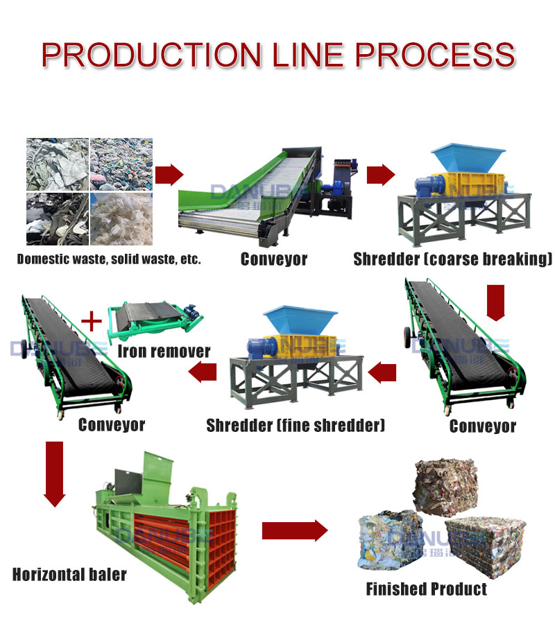 Plastic shredder recycling processing production line equipment is mainly used to shred high-density polyethylene HDPE plastic products and materials, which is conducive to plastic recycling and regenerated plastic particles. For example mineral water bottles, PET bottles, oil bottles, gasoline bottles, plastic bottles, plastic bags, plastic sheets, plastic boxes, etc.