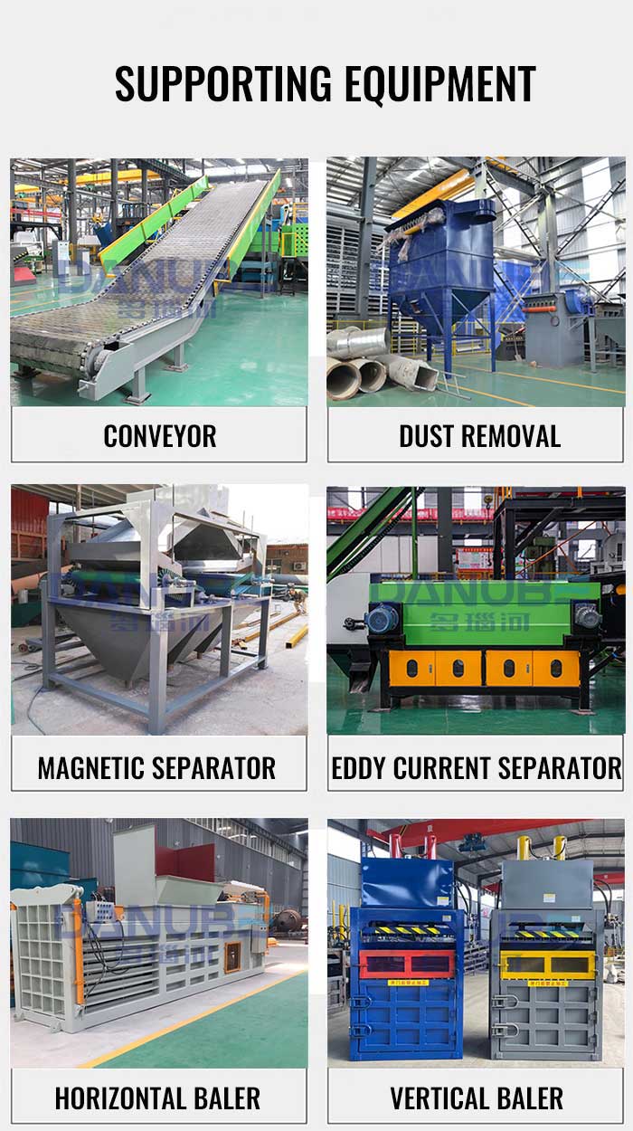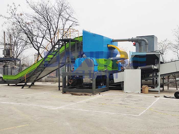 Heavy-duty wood shredder equipment can quickly shred waste wood and wood into 3~5cm, and the size can be determined according to user needs. When discharging, it can remove the nails in the separated waste construction wood and the hinges in the furniture.