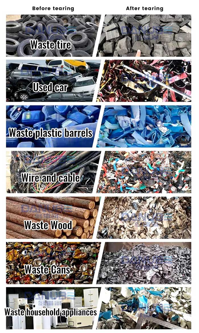 4. Double shaft shredder is able to process a number of different materials; shredder is designed with a powerful engine, long working length and aggressive input, Internal feeding volume bigger than traditional and common single shaft shredder machine and allow you using a forklift truck to feed.